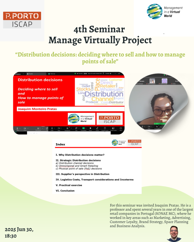 Proje ortaklarımızdan Portekiz, Manage Virtually projesi kapsamındaki ilk seminerimiz 8 Nisan’da gerçekleşti ve Portekiz Pazarlama Derneği (APPM) Başkan Yardımcısı Tiago Fleming’i davet ettik. Bu seminerde, iş piyasasının karmaşık yapısı, pazarlama profesyonellerinin profili ve üstesinden gelmeleri gereken talep ve zorluklarla ilgili fikirler ele alındı.