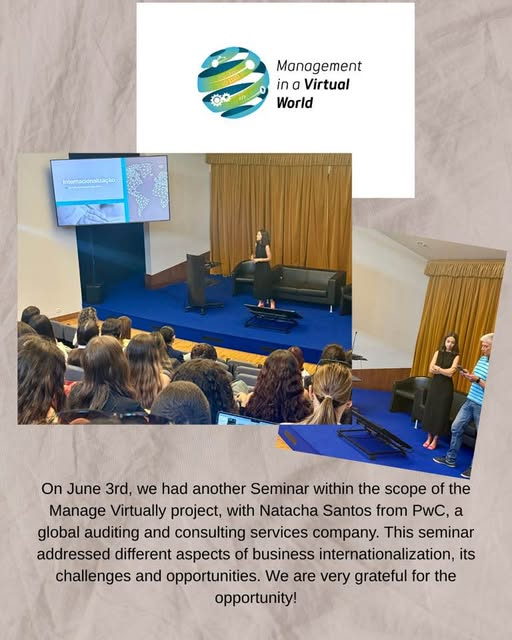 3 Haziran’da, küresel bir denetim ve danışmanlık firması olan PwC’den Dr. Natacha Santos ile #managevirtually projesi kapsamında bir seminer daha düzenledik. Seminerde, işletmelerin uluslararasılaşmasının çeşitli yönleri, zorlukları ve fırsatları ele alındı.