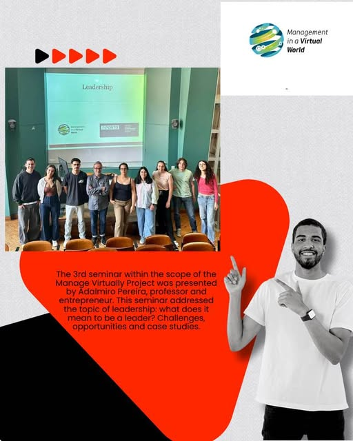 Manage Virtually projesi kapsamındaki 3. seminer, profesör ve girişimci Adalmiro Pereira tarafından sunuldu. Bu seminerde liderlik konusu ele alındı: Lider olmak nedir? Zorluklar, fırsatlar ve pratik örnekler (3 Haziran 2025).
